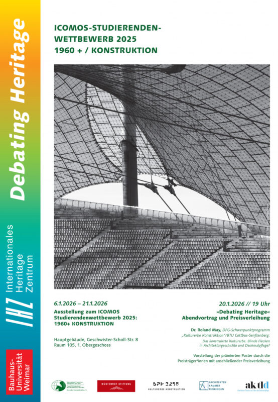 On January 20, 2026, the public award ceremony for this year’s ICOMOS student competition “1960+ / Construction” took place at Bauhaus University Weimar. The competition, organized by the German National Committee of ICOMOS, the Wüstenrot Foundation, Bauhaus University Weimar, and the Working Group on Theory and Teaching of Heritage Conservation, was initiated with the support and cooperation of SPP 2255.